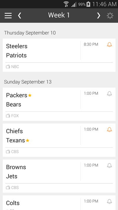 نسخه جدید و آخر برنامه Football NFL Schedules 6.6.7 برنامه اعلام امتیاز تیم فوتبال برای اندروید