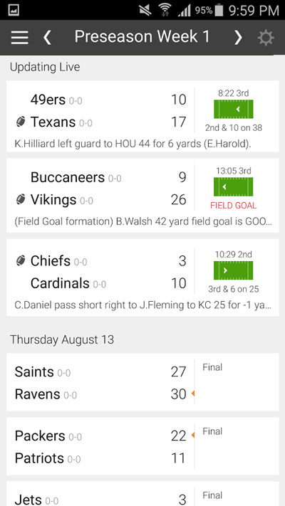 نسخه جدید و کامل Football NFL Schedules اعلام امتیاز تیم فوتبال اندروید
