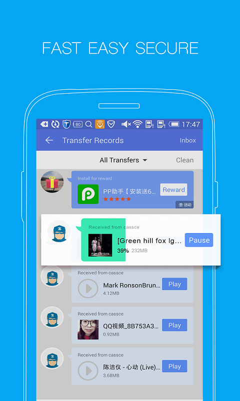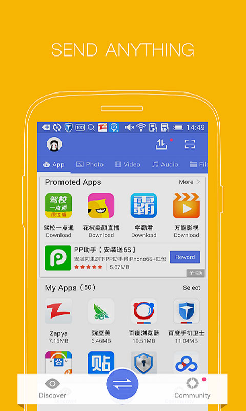 Zapya File Transfer Sharing – زاپیا سریعترین ابزار انتقال فایل در جهان از استودیوی برنامه نویسی DewMobile برای دستگاه های مختلف از جمله اندروید می باشد که توسط آن میتوانید با سرعت 2 مگابایت بر ثانیه دقیق 10 برابر سرعت 3G به انتقال فایل از طریق وای فای برای دوستان خود بپردازید . با این اپلیکیشن میتوانید هر آنچه را که در حافظه تلفن هوشمند خود دارید با سرعتی بالا ارسال کنید و یا به صورت گروهی به انتقال و دریافت فایل بپردازید . امکان ارسال و دریافت فایل ها، برنامه ها، بازی ها و تمامی اطلاعاتی ک برروی هر دو گوشی شما و طرف مقابل وجود دارد، در برنامه تعبیه شده است. اگر از کاربرانی هستید که دوست دارید اطلاعات گوشیتان را برای دوستانتان ارسال کنید همین الان با روش قدیمی بلوتوث خداحافظی کنید و به زاپیا سلام کنید!