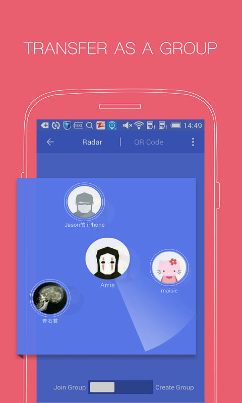 نرم افزار را اجرا کنید و برای اولین بار برای خود یک آواتار بسازید و پس از آن در صفحه ی جدید لیستی از بازی ها و برنامه های شما به نمایش در می آید که برروی connect to friends کلیک میکنید و نفر دوم باید در گوشی خود create group را انتخاب کند . پس از ساخت گروپ گزینه connect to friends به wating for friends تغییر خواهد کرد که نفر دوم باید در گوشی خود connect to friends را انتخاب کند و به انتقال فایل ها بپردازند .