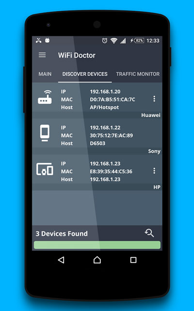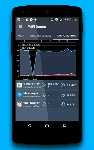 WiFi Doctor برنامه اي است كه به شما در مديريت و تجزيه تحليل اتصالات وای فای در گوشي هوشمندتان كمك ميكند.از ویژگی های این برنامه میتوان به نظارت بر ترافيك – بهینه سازی – اسكنر شبكه و…. اشاره کرد.توجه داشته باشيد اين برنامه سرعت محدود شده ي ISP را كنترل نميكند بلكه فقط ميتوانيد خطاهاي اتصال را تعمير كنيد.