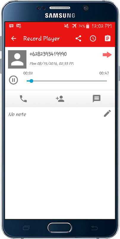 Super Call Recorder PRO نرم افزاری فوق العاده برای ضبط مکالمات شما در سیستم عامل اندروید می باشد.این برنامه در حال حاضر به قیمت 0.99 دلار در مارکت در دسترس است و سایت زر دانلود قصد معرفی این برنامه را خدمت شما دوستان عزیز دارد.برنامه قابلیت های زیادی از جمله شخصی سازی تنظیمات متفاوت را برای شما فراهم می سازد.حتی میتوانید فرمت ذخیره و محل ذخیره را تغییر دهید.همچنین شما میتوانید از طریق DropBox تمام تماسهای ضبط شده را در ابر ذخیره كنید. با این روش تمام تماسهای شما ذخیره شده و دیگر حافظه ی دستگاه اشغال نخواهد شد.