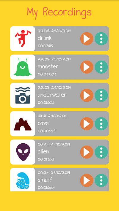 با استفاده ار برنامه میتوانید Voice Changer Premium v2.0 با افکت های دلخواهتان صدای خود را ضبط کرده و آنرا با میل و سلیقه شخصیتان تغییر داده و به عنوان زنگ ، اطلاع رسانی یا هشدار گوشی اندرویتان قرارش دهید. شما میتوانید صدای تغییر یافته خود را با دوستانتان در ایمیل، Dropbox، Whatsapp به اشتراک بگذارید .