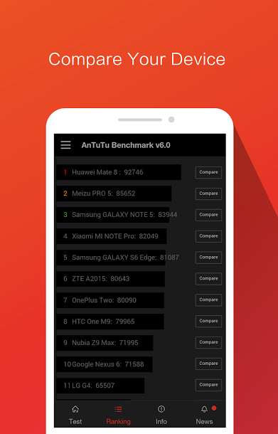 AnTuTu Benchmark برنامه ای است برای تست قدرت دستگاه اندرویدی شما.با نصب این برنامه میتوانید امتیاز کل قدرت گوشی را به دست بیاورید این برنامه در واقع عملکرد رم-سی پی یو-گرافیک 2بعدی-سه بعدی-سرعت خواندن و نوشتن مموری و دیگر سخت افزارها را تست میکند و امتیاز هر کدام را جداگانه به شما نمایش میذهد و امتیاز کل سخت افزار گوشی را یه شما نمایش میدهد.اگر مایلید بدانید قدرت گوشی اندرویدی شما در چه سطحی اس این برنامه کاربردی را به شما پیشنهاد میکنیم.