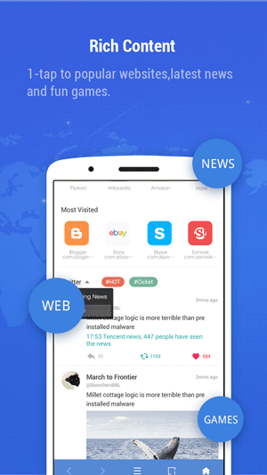 Minifier Browser مرورگر جدید،سریع و قدرتمند اندروید است که اخیرا توسط kepoodev توسعه یافته است.این مرورگر به شما امکان دسترسی سریع و مرور سریع را با استفاده از ویژگی های مفید مانند محافظ داده، پنجره بازشو، ذخیره کردن صفحه و…. می دهد. Minifier Browser یک مرورگر کوچک، سریع و خصوصی برای گوشی و تبلت های اندروید است که بهترین تجربه مرور اینترنت را فراهم می کند. این مرورگر می تواند به طور موثر سرعت بارگذاری صفحه را افزایش دهد و داده های / ترافیک را با 60٪ ذخیره کند.این مرورگر به عنوان یک برنامه مرورگر با قابلیت کامل، تعداد زیادی از ویژگی های مفید و افزونه ها، از جمله فلش پلیر، حالت سرعت، حالت تمام صفحه، حالت ناشناس، حالت بدون تصویر، اخبار و ویدئو های مورد علاقه و غیره را فراهم می کند.
