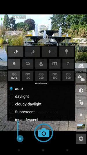 * گزینه ای برای تثبیت خودکار * عملکرد دوربین شامل: پشتیبانی از حالت های فوکوس، حالت های صحنه، جلوه های رنگی، تعادل رنگی، ISO، جبران نوردهی، تشخیص چهره و… * ضبط ویدئو (از جمله HD) * کنترل از راه دور با استفاده از: تایمر (با شمارش معکوس عکس گرفته میشود)، حالت خودکار تکرار (با تاخیر قابل تنظیم). * گزینه ای برای گرفتن عکس از راه دور با ایجاد یک سر و صدا (به عنوان مثال، صدای سوت)، و یا با دستور صدای “پنیر”. * کلید های قابل تنظیم * بهینه سازی رابط کاربری گرافیکی برای کاربران چپ یا راست دست. * زوم از طریق حرکت چند لمسی و کنترل تک لمسی. * گزینه ای برای بستن جهت گیری به صورت پرتره یا منظره برای عکس یا ویدئو. گزینه پیش نمایش به سمت بالا برای استفاده با لنزهای قابل اتصال * انتخاب پوشه ذخیره * صدای شاتر را غیرفعال کنید * برچسب های موقعیت مکانی جغرافیایی اختیاری (برچسب گذاری جغرافیایی) از عکس ها و فیلم ها؛ برای عکس ها شامل جهت قطب نما (GPSImgDirection، GPSImgDirectionRef) است. * تاريخ و زمانبندي، مختصات مکان و متن سفيد را به عکس ارسال کنيد تاریخ / زمان و محل ذخیره را به عنوان زیرنویس ویدئویی (.SRT) ذخیره کنید. * پشتیبانی از (برخی) میکروفن های خارجی. * پشتیبانی از HDR و Exposure Bracketing. * پشتیبانی از API Camera2: فاصله فوکوس دستی؛ ISO دستی ؛ دمای متعادل کننده – کتابچه راهنمای کاربر؛ فایل های RAW (DNG). * حالت بهینه سازی پویا * اندازه فایل کوچک. * کاملا رایگان و بدون تبلیغات در برنامه