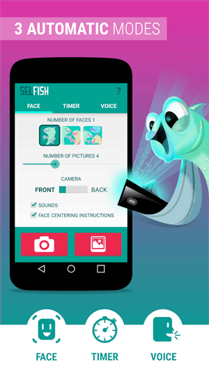 Selfish – Selfie Camera یک اپلیکیشن فوق العاده برای گرفتن تصاویر سلفی در سیستم عامل اندروید می باشد که اخیر در مارکت گوگل با قیمت 5.49 دلار منتشر شده است.امروز تصمیم گرفتیم این اپلیکیشن ارزشمند را خدمت شما کاربران عزیز زر دانلود معرفی کنیم.شما با نصب این دوربین بر روی دستگاه اندرویدی خود میتوانید عکس های سلفی با کیفیت بگیرید.شما میتوانید به سه روش عکسبرداری سلفی داشته باشید.3 حالت اتوماتیک مختلف عبارتند از: شناسایی چهره– تایمر خودکار – دستور صوتی.