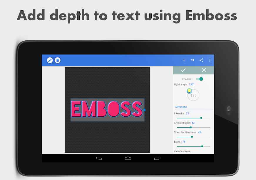 عکس نوشته ها یکی از محبوب ترین نوع تصاویری هستند که روزانه میلیون ها کاربر در شبکه های اجتماعی اقدام به اشتراک گذاریشان می کنند. ایجاد عکس نوشته ها بر خلاف تصویر بسیاری از افراد بسیار ساده و آسان طراحی و ساخته می شون، به طوری که برای ایجاد آن ها تنها به یک متن و تصویر مناسب نیاز است! با توجه به این موضوع قصد داریم در این پست شما را با یکی از بهترین برنامه های موجود در این زمینه آشنا سازیم. PixelLab – Text on pictures AD-FREE عنوان یک اپلیکیشن کامل و پر امکانات برای افزودن متن بر روی تصاویر مخصوص اندروید می باشد که توسط استودیو Imagin Studio توسعه و در مارکت بزرگ گوگل پلی منتشر شده است. این نرم افزار با بهره مندی از یک رابط کاربری ساده به کاربرانش اجازه می دهد تا متن های حرفه ای و سه بعدی مد نظرشان را بر روی تصاویر اضافه کنند و آن ها را با کیفیتی فوق العاده ذخیره نمایند. تنظیمات گسترده ای برای نوشتن متن ها در اختیار هر کسی می باشد که استفاده از این نوع تنظیمات خاص تنها به سلیقه و توانایی های شما بستگی دارد. 60 گزینه گرافیکی منحصر به فرد سفارشی در لیست امکانات به چشم می خورد که بهتر است استفاده از آن ها را فراموش نکنید.