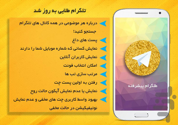 ویژگی های برنامه تلگرام طلایی (طلگرام پیشرفته):