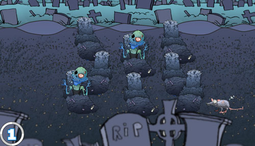 موجوداتی از دل خاک ،از قبرها،از بشکه ها و…. بیرون می آیند.شما با استفاده یک چکش چوبی باید به سر این موجودات ضربه بزنید و امتیاز جمع کنید.در شروع بازی این موجودات به ندرت و با تاخیر بالا می آیند و هر چه ثانیه و دقیقه میگذرد سرعت موجودات افزایش می یابد.